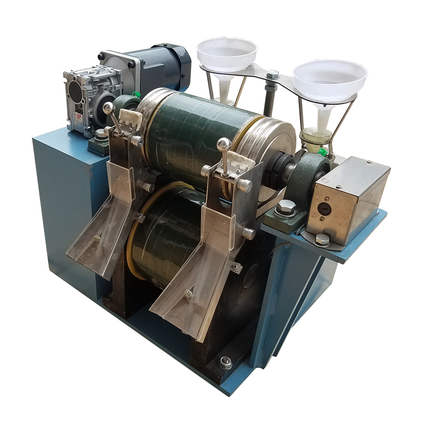It is composed of fixed magnetic pole, roller rotation magnetic pole, as well as exciting winding and exciting DC power supply installed above them. The upper and lower magnetic poles are parallel arranged. Two rollers with the diameter of 120mm and the lower magnetic poles constitute closed magnetic circuit. The working distance between the two magnetic poles can be adjusted through the increase or decrease of base plates. Through the adjustment of the voltage of high-voltage machine, the DC current supplied to fixed exciting winding and supplied through electric brush to exciting winding for rollers to rotate magnetic pole can be increased to the rated value 2A smoothly. To meet the requirement for the separation of different types of ore, the magnetic field of this machine can be divided into high-intensity magnetic field and low-intensity magnetic field according to intensity, which can be selected through the magnetic field selection switch on the panel. When the separation magnet distance is 4mm, the magnetic field selection switch is put in the position of “high-intensity magnetic field”. When the excitation current is 2A, the maximum magnetic-field intensity is not lower than 14,000Oe (1,110RA/m).