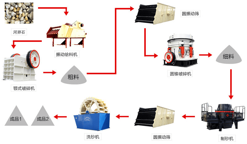 廣東茂名500t/d鵝卵石機(jī)制砂流程工藝
